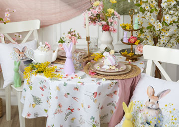Bald ist Ostern und damit DIE Gelegenheit, um frischen Frühlingswind in Ihr Zuhause zu bringen. Ob Weidenkätzchen, Blumenservietten und Vasen für den Ostertisch, pastellfarbene Tischwäsche oder farbenfrohe Zierkissen und Vorhänge – bei uns finden Sie jede Menge hübsche Accessoires, mit denen Sie Ihr Zuhause schmücken können.