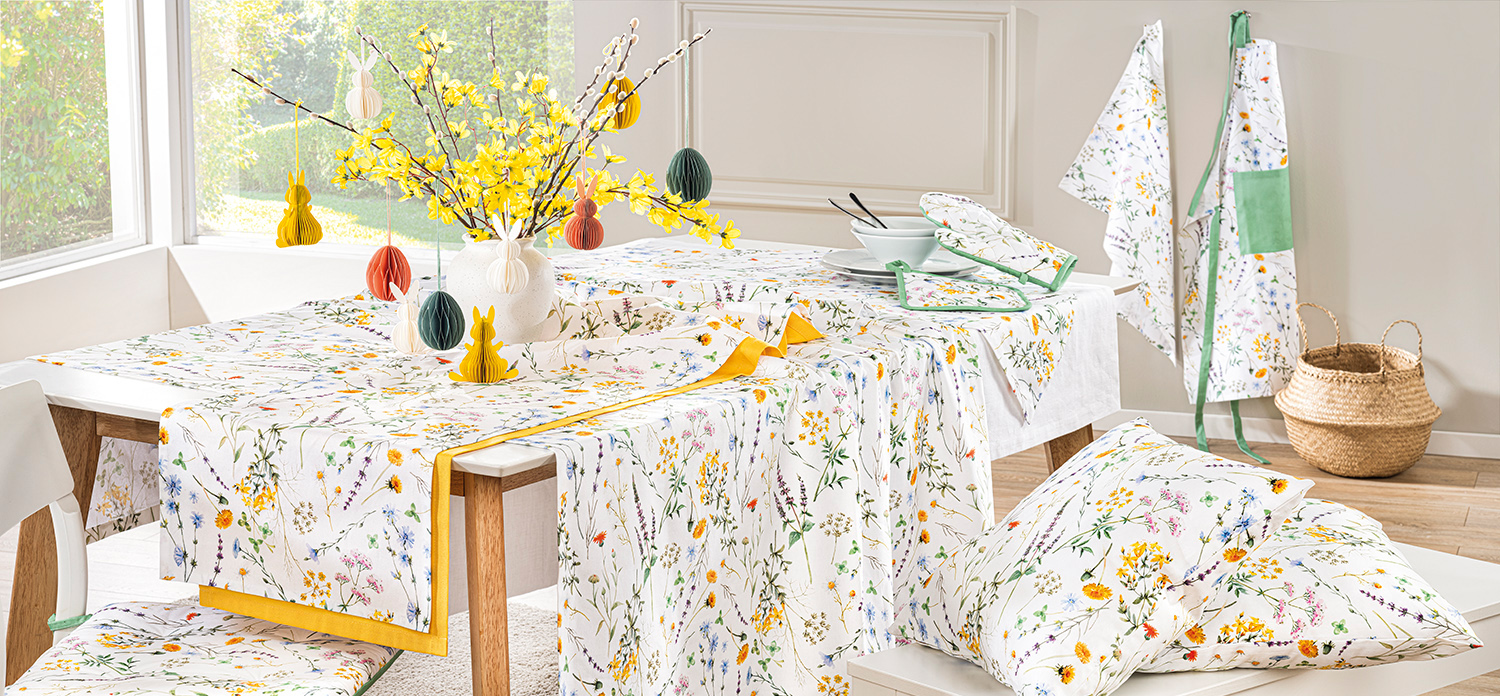 Bald ist Ostern und damit DIE Gelegenheit, um frischen Frühlingswind in Ihr Zuhause zu bringen. Ob Weidenkätzchen, Blumenservietten und Vasen für den Ostertisch, pastellfarbene Tischwäsche oder farbenfrohe Zierkissen und Vorhänge – bei uns finden Sie jede Menge hübsche Accessoires, mit denen Sie Ihr Zuhause schmücken können.